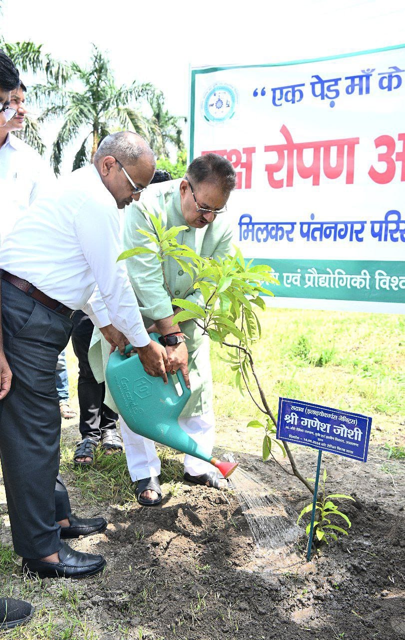 जनपद ऊधमसिंह नगर प्रभारी/ कृषि मंत्री गणेश जोशी ने आज गोविंद बल्लभ पंत कृषि प्राद्योगिकी विश्वविद्यालय पंतनगर के परिसर में एक पेड़ मां के नाम अभियान के अंतर्गत अपनी मां के सम्मान में रुद्राक्ष के पौधे का रोपण कर पर्यावरण संरक्षण का संदेश दिया। इस दौरान कृषि मंत्री गणेश जोशी ने पर्यावरण के संरक्षण और उसके संवर्धन के लिए प्रकृति को हरा भरा बनाए हेतु अपनी सहभागिता अधिक से अधिक सुनिश्चित करने का आव्हान किया।