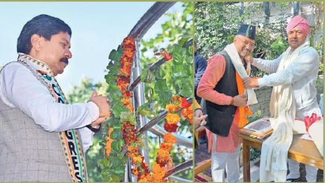 देहरादून में महापौर पद के भाजपा और कांग्रेस के प्रत्याशी चुनाव प्रचार में जुटे हैं। साथ ही जीत के लिए आशीर्वाद भी लेने पहुंचे रहे हैं। गुरुवार को भाजपा प्रत्याशी सौरभ थपलियाल और कांग्रेस प्रत्याशी वीरेंद्र पोखरियाल ने दरबार साहिब में मत्था टेका। दोनों प्रत्याशियों ने श्रीमहंत देवेंद्र दास से शिष्टाचार भेंट कर उनका आशीर्वाद लिया।