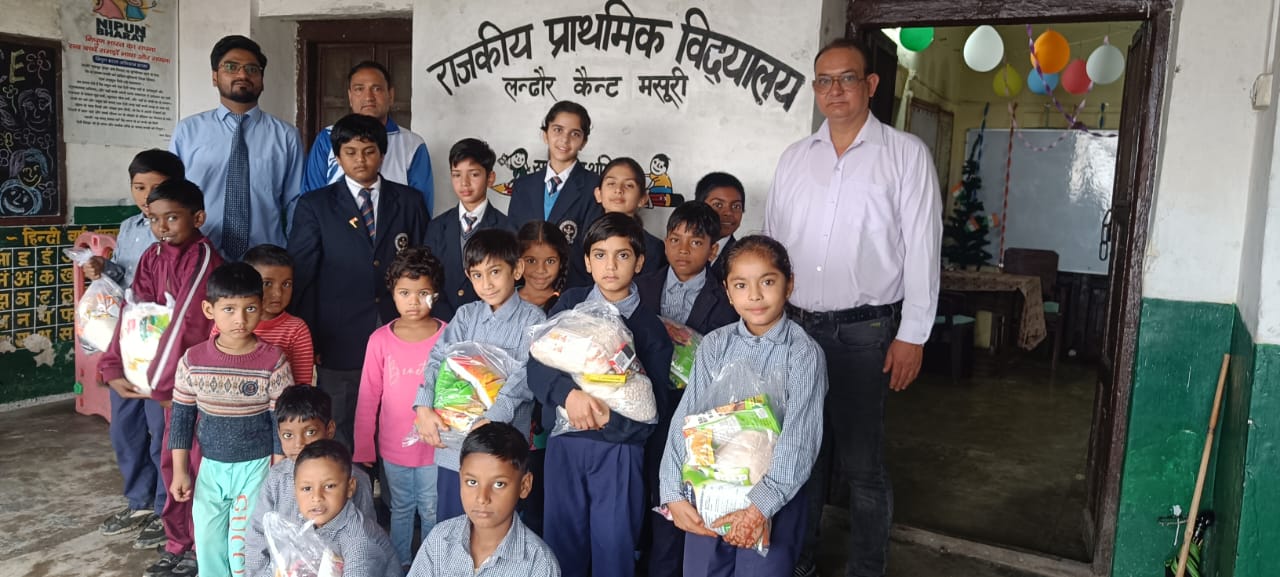 मसूरी। छावनी परिषद क्षेत्र लंढौर मलिंगार स्थित राजकीय प्राथमिक विद्यालय में मसूरी पब्लिक स्कूल के विद्यार्थियों ने सामाजिक सरोकार की सराहनीय पहल प्रस्तुत करते हुए विद्यालय में पढने वाले जरूरतमंद छात्र छात्राओं को राशन किट भेंट की, जो स्वयं एमपीएस के विद्यार्थियों द्वारा एकत्रित की गई थी।