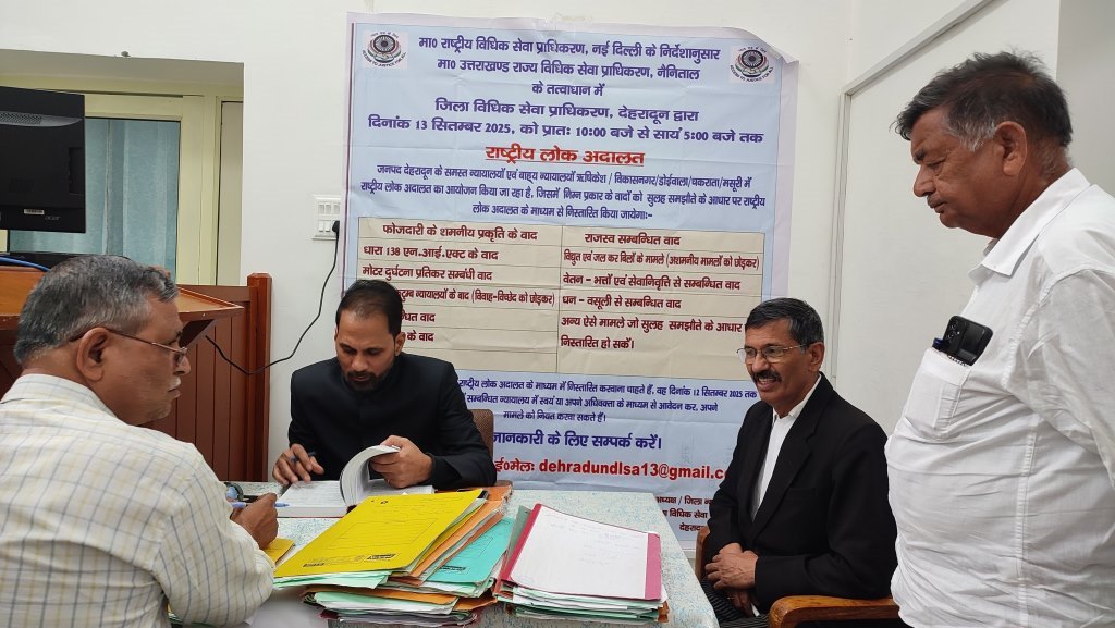 मसूरी। राष्ट्रीय विधिक सेवा प्राधिकरण के निर्देश व उत्तराखंड राज्य विधिक सेवा प्राधिकरण के तत्वाधान में जिला विधिक सेवा प्राधिकरण के राष्ट्रीय लोक अदालत में पीठ संख्या 23 ने 40 मामलों पर सुनवाई की गयी जिसमें 34 मामलों का निस्तारण किया गया।