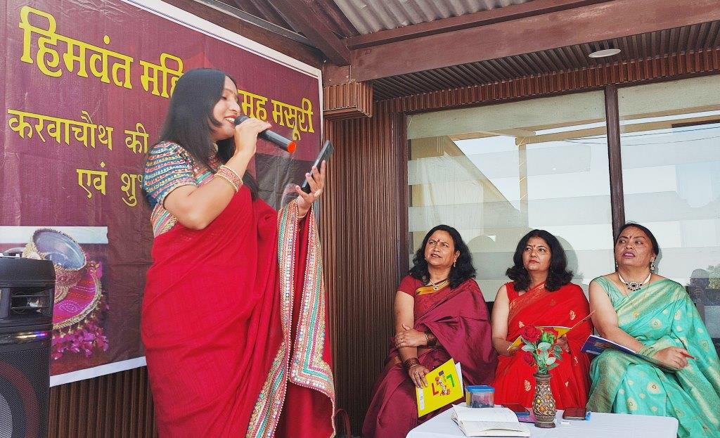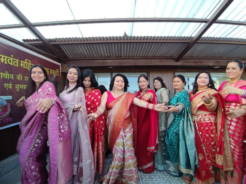 मसूरी। हिमवंत महिला समूह मसूरी ने कुलड़ी स्थित एक होटल के सभागार में करवा चौथ कार्यक्रम का आयोजन किया जिसमें बड़ी संख्या में महिलाए श्रृंगार कर आयी व कार्यक्रम में नृत्य, व विभिन्न मनोरंजक खेलों में प्रतिभाग किया।