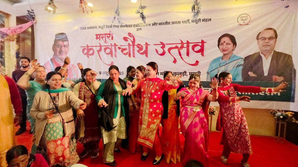 मसूरी। मसूरी ट्रेर्डस एंड वेलफेयर एसोसिएशन एवं भाजपा मसूरी मंडल के संयुक्त तत्वाधान में करवा चौथ उत्सव 2025 राधा कृष्ण मंदिर में आयोजित किया गया जिसमें गीत संगीत, मेंहदी, व लक्की ड्रा का आयोजन किया गया। मेले में बड़ी संख्या में महिलाओं ने प्रतिभाग किया।