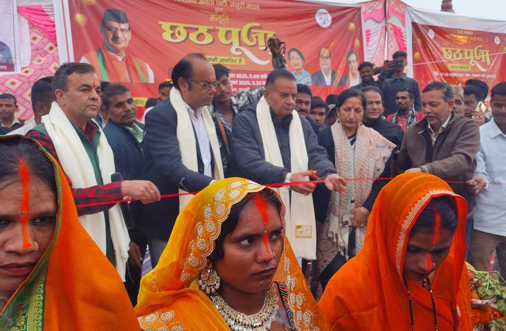 भाजपा मसूरी मंडल के तत्वाधान व बिहारी महासभा के सहयोग से छठ पूजा का पर्व मनाया गया जिसका शुभारंभ बतौर मुख्य अतिथि मंत्री गणेश जोशी व विशिष्ट अतिथि पालिकाध्यक्ष मीरा सकलानी, भाजपा मंडल अध्यक्ष रजत अग्रवाल, व पूर्व मंडल अध्यक्ष मोहन पेटवाल ने रीबन काट कर उदघाटन किया। इस मौके पर महिलाओं ने ठंडे पानी में खडे होकर मां छठ की पूजा की व सूर्य डूबने के समय अर्क देकर पूजा समाप्त की। अर्क देने के बाद जमकर आतिशबाजी की गयी व नृत्य किए गये इस मौके पर मंत्री गणेश जोशी ने बिहारी सभा को छठ पूजा की बधाई दी व कहा कि हमारे तीज त्योहार व मेले हमारी संस्कृति के निर्वाहक होते है। उन्होंने कहा कि देश के निर्माण में बिहारी समाज के योगदान को भुलाया नहीं जा सकता। यह हमारी एकता व संस्कृति का प्रतीक होता है। प्रधानमंत्री नरेंद्र मोदी ने कहा कि भारत विभिन्न धर्मो व जातियों को देश है लेकिन त्योहार सभी मिलकर मनाते हैं। हर दिन कोई न कोई त्योहार होता है। उन्होंने कहा कि छठ का त्योहार जो पहले केवल बिहार, उत्तर प्रदेश व नेपाल में मनाया जाता था वह आज पूरे देश में मनाया जा रहा है, इसी कड़ी में मसूरी में भी मनाया जा रहा है। उन्होने मां छठ से सभी की समृद्धि की कामना की। इस मौके पर पालिकाध्यक्ष मीरा सकलानी ने भी बिहारी समाज के लोगों को छठ पर्व की बधाई दी व भाजपा मंडल अध्यक्ष रजत का विशेष आभार व्यक्त किया जिनके नेतृत्व में विगत दो वर्षों से यह कार्यक्रम आयोजित किया जा रहा है। इस मौके पर बिहार महासभा के अध्यक्ष राजकिशोर ने कहा कि दो वर्षो से यह पर्व मसूरी में मनाया जा रहा है जिसमें डूबते व उगते सूर्य की पूजा की जाती है। इस मौके पर सूर्य को अर्घ्य देने वाली महिला रामकली देवी ने कहा कि छठ पूजा निर्जला व्रत रखा जाता है व डूबते सूर्य व उगते सूर्य को अर्घ्य दिया जाता है। इस मौके पर भाजपा मंडल अध्यक्ष रजत अग्रवाल ने कहा कि हर साल मसूरी में छठ पर्व मनाया जाता है, इस पर्व पर घरों की सफाई की जाती है व मां छठ व सूर्य की पूजा की जाती है। सभी पर मां छठ का आशीर्वाद बना रहे यह कामना करते है। कार्यक्रम का संचालन जगजीत कुकरेजा ने किया। इस मौके पर राजकिशोर, प्रमोद, पकंज, सरदारी, कमल, संतोष, राम किशोर, शंभू अरूण सहित भाजपा मंडल उपाध्यक्ष अरविंद सेमवाल, विधायक स्वास्थ्य प्रतिनिधि रमेश खंडूरी, सहित बड़ी संख्या में बिहारी समाज सहित लोग मौजूद रहे।