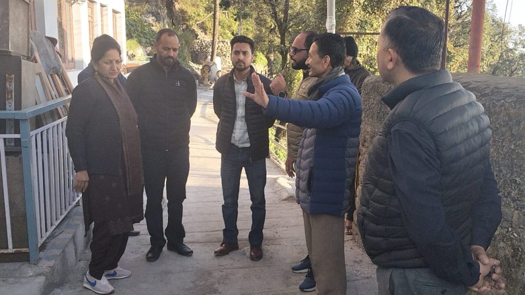 नगर पालिकाध्यक्ष मीरा सकलानी ने क्षेत्रीय सभासद अमित भटट के साथ वार्ड नबंर सात में क्लिफ काटेज रोड के निर्माण कार्य का निरीक्षण किया। इस दौरान स्थानीय लोगों ने पालिकाध्यक्ष के समक्ष समस्यायें रखी व उसके निस्तारण की मांग की। स्थानीय लोगों का कहना था कि रोड पर कार्य ठीक नहीं किया गया वहीं लोगों को रास्ता तक नहीं दिया गया वहीं चेंबर नीचे रह गये। जिस पर पालिकाध्यक्ष मीरा सकलानी ने ठेकेदार को माननीय अध्यक्ष महोदया एवं पालिका अधिकारियो द्वारा आज दिनांक 29.10.2025 को सायं 04.00 बजे क्लिफ कॉटेज मार्ग पर निर्माणाधीन मार्ग का निरीक्षण किया गया। निरीक्षण के दौरान निर्माणाधीन मार्ग के सम्बन्ध में स्थानीय जनों द्वारा अध्यक्ष नगर पालिका के समक्ष परेशानियां रखी गई। अध्यक्ष नगर पालिका द्वारा अवर अभियंता को समस्या के निराकरण हेतु निर्देशित किया गया। साथ ही मोहल्ले वासियों को उनके अनुरोध के अनुसार एवं उच्च गुणवत्ता के मार्ग निर्माण कार्य का आश्वासन दिया गया। मोहल्ले वासियों द्वारा अध्यक्ष नगर पालिका को उनकी समस्या के निराकरण हेतु स्थल पर आने हेतु धन्यवाद दिया गया। निरीक्षण के दौरान अध्यक्ष नगर पालिका, क्षेत्रीय सभासद अमित भट्ट, अवर अभियंता रजत नेगी, संबंधित ठेकेदार व क्षेत्रवासी मौजुद रहे।