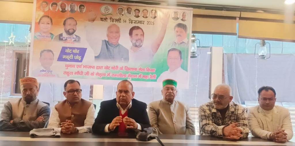 इस मौके पर कांग्रेस अध्यक्ष पछवादून संजय किशोर ने कहा कि 14 दिसंबर को दिल्ली के रामलीला मैदान में वोट चोर गददी छोड़ के तहत विशाल रैली का आयोजन राहुल गांधी व राष्ट्रीय अध्यक्ष मल्लिकार्जुन खड़गे के नेतृत्व में किया जा रहा है। जिसमें बड़ी संख्या में पछवादून से कार्यकर्ता शामिल होगे वहीं पूरे उत्तराखंड से 25 हजार से अधिक कार्यकर्ता दिल्ली रैली में शामिल होने जायेंगे।उन्होंने कहा कि आगामी उत्तराखंड में चुनाव 2027 को लेकर कांग्रेस में बड़ा बदलाव किया गया है व प्रदेश कांग्रेस अध्यक्ष गणेश गोदियाल बने है, चुनाव प्रचार समिति के अध्यक्ष प्रीतम सिंह व मैनेजमेंट कमेटी के अध्यक्ष हरक सिंह रावत बनाये गये है, व कार्यकर्ता उत्साह में है व प्रदेश के सभी जिलाध्यक्ष भी मैदान पर आ गये है, प्रदेश कार्यकारणी का विस्तार किया जायेगा व जनता की समस्याओं को लेकर लड़ाई लडी जायेगी व 2027 में कांग्रेस की सरकार बनेगी व जनता को मंहगाई व भाजपा की जन विरोधी नीति से निजात मिलेगी। उन्होंने कहा कि बारबार पेपर लीक हो रहे है, महंगाई व भ्रष्टाचार चरम पर है। इस मौके पर रैली के संयोजक आलेद्र शर्मा ने कहाकि 14 दिसंबर की रैली में लाखों लोग शामिल हो रहे है, उत्तराखंड से बड़ी संख्या में कार्यकर्ता जायेगें व आम जनता का भी आहवान किया जा रहा है कि इस रैली में प्रतिभाग करें। उन्हांने कहा कि जनता सतर्क रहे कि उनका वोट न कटे वहीं एसआईआर के माध्यम से वोट काटे जायेंगे इस पर नजर रखें। भाजपा सरकार जनता को गुमराह करने के लिए मतदाता सूची में मतदाताओं के नामों को काट रही है या उन्हें दूसरे क्षेत्रो में डाल रही है ताकि उसे पता न लग सके चुनाव के समय अंतिम प्रकाशन किया जाता है व उसके बाद एडिशनल लिस्ट भी आती है लेकिन उसमें किसके नाम कटे किसके जोड़े गये प्रत्याशी को पता नहीं होता वह अपने नामांकन में व्यस्त रहता है। उन्होंने यह भी कहा कि मतदाता के दो जगह नाम नहीं होने चाहिए,एसआईआर में कई खामिंयां है, जो भारत का नागरिक है व संविधान ने अधिकार दिया है तो उसका वोट होना चाहिए। इस मौके पर शहर कांग्रेस अध्यक्ष अमित गुप्ता ने कहा कि 14 दिसंबर को दिल्ली रैली में मसूरी की जनता का भी आहवान किया गया है कि वोट चोर गददी छोड के नारे को लेकिन दिल्ली रैली में शामिल हों, उन्होंने कहाकि चुनाव आयोग भाजपा के दबाव में कार्य कर रहा है व जनता से वोट का अधिकार छीना जा रहा है ऐसे में जनता को वोट का अधिकार दिलाने के लिए कांग्रेस हर संभव प्रयास करेगी। मसूरी से भी बड़ी संख्या में दिल्ली कूच में शामिल होंगे। इस रैली से अपेक्षा है कि भाजपा के आंख कान खुलेंगे। इस मौके पर पूर्व पालिकाध्यक्ष मनमोहन सिंह मल्ल, पीसीसी सदस्य उपेंद्र थापली, महेशचंद, महिमानंद, राजेश मल्ल, अजीज अहमद, पूर