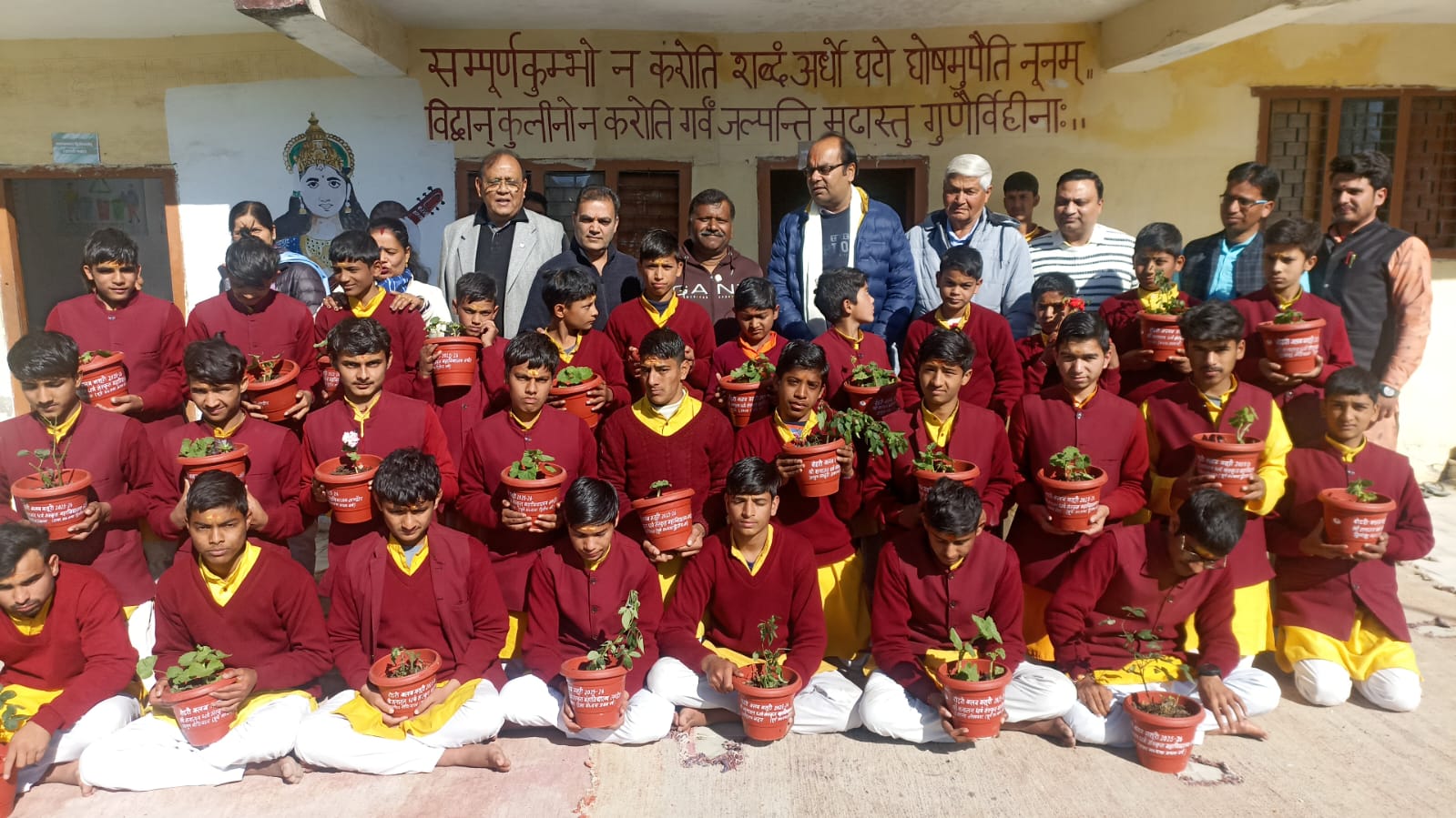 मसूरी। रोटरी क्लब मसूरी ने सनातन धर्म संस्कृत महाविद्यालय लंढौर मसूरी में आयोजित एक कार्यक्रम में महाविद्यालय के छात्रों को 44 पौधों सहित गमले वितिरित किए ताकि वे पर्यावरण के प्रति जागरूक हो कर उन्हें लगायें व देख भाल कर सकें।