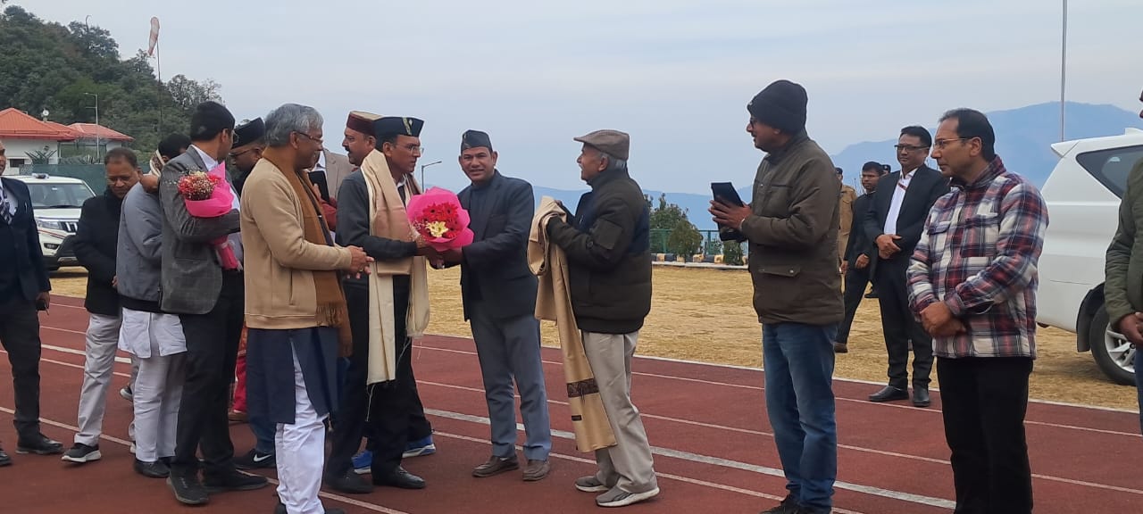 मसूरी। एक निजी कार्यक्रम में शामिल होने मसूरी आये केंद्रीय खेल, युवा मामले, श्रम और रोजगार मंत्री मनसुख मांडविया को पोलो ग्राउंड हैलीपैड पर भाजपा मसूरी मंडल व नगर पालिकाध्यक्ष मीरा सकलानी ने मसूरी में स्टेडियम निर्माण सहित अन्य विषयों पर ज्ञापन दिया। इस मौके पर पालिकाध्यक्ष मीरा सकलानी, भाजपा मंडल अध्यक्ष रजत अग्रवाल, पूर्व पालिकाध्यक्ष ओपी उनियाल, पूर्व मंडल अध्यक्ष मोहन पेटवाल व कार्यकर्ताआं ने केंद्रीय खेल मंत्री मनसुख मांडविया, पूर्व मुख्यमंत्री व सांसद त्रिवेंद्र रावत व सांसद अनिल बलूनी को गुलदस्ता, शॉल व पहाड़ी टोपी भेंटकर स्वागत किया।