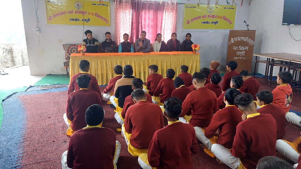उन्होंने छात्रों के साथ-साथ शिक्षकों को भी अन्य संस्कृत विद्यालयों की भांति श्रीमद्भगवत गीता के अष्टादश अध्यायों को भावार्थ और सार के साथ पठन-पाठन करने के अतिरिक्त नगर पालिका क्षेत्र के आसपास के क्षेत्र में नियमित तौर पर संस्कृत संभाषण शिविर आयोजित करने के निर्देश दिये। प्रधानाचार्य मीनाक्षी ने बताया गया कि हर वर्ष छात्रों को शैक्षिक भ्रमण पर विभिन्न स्थानों पर ले जाया जाता है. पिछले वर्षों में मथुरा-वृंदावन एवं इस वर्ष ऋषिकेश ले जाया जा रहा है. सचिव ने निर्देश दिये कि छात्रों का अन्य संस्कृत विद्यालयों के छात्रों से भी संवाद करवायें जिससे कि संस्कृत संभाषण एवं गीता-संबाद इत्यादि पर विचारों का आदान प्रदान हो सके। उन्होंने छात्रों के भविष्य को ध्यान में रखते हुए प्रबंधन से अनुरोध किया कि उत्तराखंड शासन के निर्देशों के अंतर्गत उत्तराखंड संस्कृत शिक्षा परिषद से पूर्व एवं उत्तर मध्यमा में विज्ञान-गणित विषयों की मान्यता लेते हुए सुयोग्य अध्यापकों की व्यवस्था करें जिससे आने वाले वर्षों में विद्यालय के छात्र जेईई मेन्स एवं नीट की भी परीक्षाएं दे पायें। सचिव ने छात्रों को संस्कृत के साथ-साथ एक विदेशी भाषा सीखने की सलाह के साथ-साथ वैकल्पिक विषय के रूप में मानसिक दक्षता बढ़ाने हेतु भारतीय गणित सीखने की भी सलाह दी। उसके उपरांत सचिव ने स्टेशनरी इत्यादि की सहायता देने वाली कृपालु महाराजा जी की संस्था राधा कुंज का भ्रमण कर इस नेक काम हेतु संस्था के पदाधिकारियों का धन्यबाद प्रेषित किया।