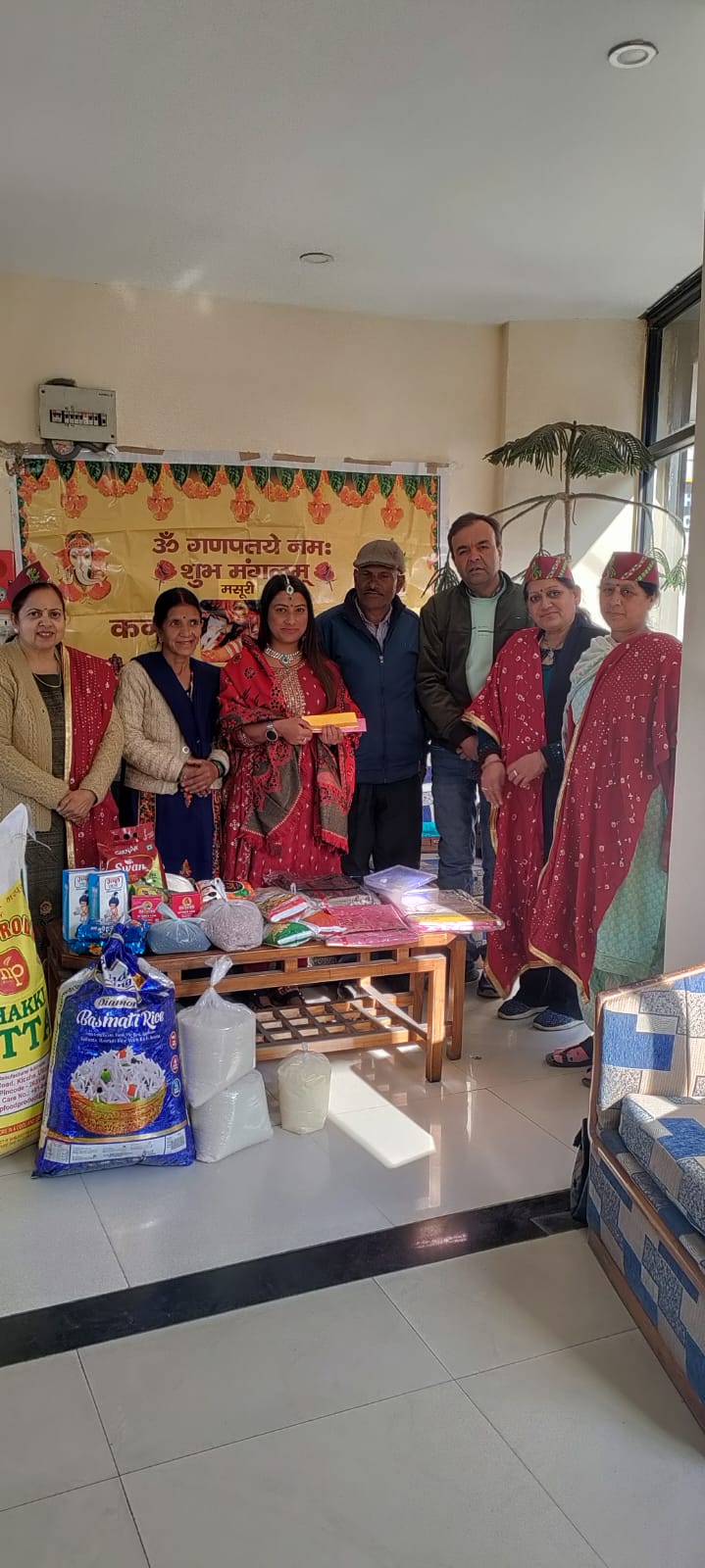 शुभ मंगलम संस्था की अध्यक्ष रेनू अग्रवाल ने बताया कि शुभ ंमगलम संस्था विगत वर्षो से गरीब लड़कियों की शादी में सहयोग कर रही है। इसी कड़ी में अवगत कराया गया कि एक गरीब लड़की की शादी फरवरी माह में होनी है व उसके परिजन शादी की तैयारी करने में सक्षम नहीं है जिस पर संस्था ने लड़की के शादी के लिए सामान एकत्र किया व सामर्थ के अनुसार एक कार्यक्रम कर उसको सामान दिया। जिसमें पंचास आदमियों के लिए खाने का सारा सामान, सहित कपड़े, आदि दिए गये। इस मौके पर संस्था की अध्यक्ष रेनू अग्रवाल, सदस्य बबीता अग्रवाल, रेनू वाही, जगजीत कुकरेजा व लडकी तथा उनके परिजन मौजूद रहे।