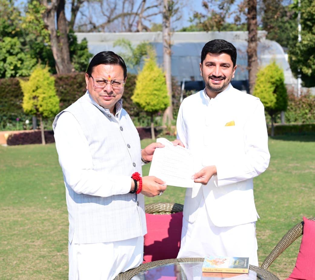 मसूरी। भाजपा युवा मोर्चा के प्रदेश मंत्री एडवोकेट आर्यन देव उनियाल ने प्रदेश के मुख्यमंत्री पुष्कर सिंह धामी से भेंट कर मसूरी में जनहितकारी, युवा केंद्रित एवं आपदा संवेदनशील विकास हेतु विस्तार से वार्ता की व समस्याओं के निराकरण के लिए ज्ञापन दिया।