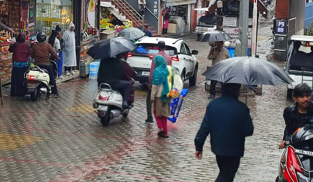 मसूरी। पर्यटन नगरी में बारिश होने से आम जन जीवन प्रभावित हो गया। सुबह करीब चार बजे से बारिश शुरू हो गयी थी लेकिन नौ बजे प्रातः बारिश बंद हो गयी व उसके बाद दोपहर में फिर से बारिश होने से ठंड बढ गयी जिससे लोगों को गर्म कपड़े पहनने पर मजबूर कर दिया। सबसे अधिक परेशानी स्कूली बच्चों को हुई जो ठंड में परेशान दिखे, वहीं बारिश के कारण बाजारों से भी रौनक गायब रही वहीं रूक रूक कर बारिश होती रही। दुकानदारों ने हीटर व आग के सहारे दिन काटा वहीं अधिकतर लोग घरों से नहीं निकले केवल काम करने वाले ही बाहर निकले।